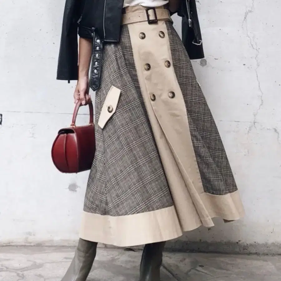Ameri 아메리 CHECK TRENCH SKIRT 체크 롱 스커트