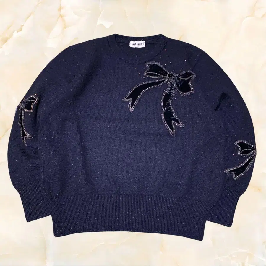 ANNA FRODI 리본 장식 니트 블랙 이탈리아제 쇼트 기장