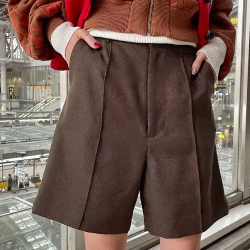 Ray BEAMS 브라운 플리츠 숏팬츠