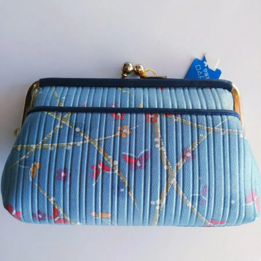 중형 코인 케이스 파란색 나비 꽃무늬 모자 가마구치