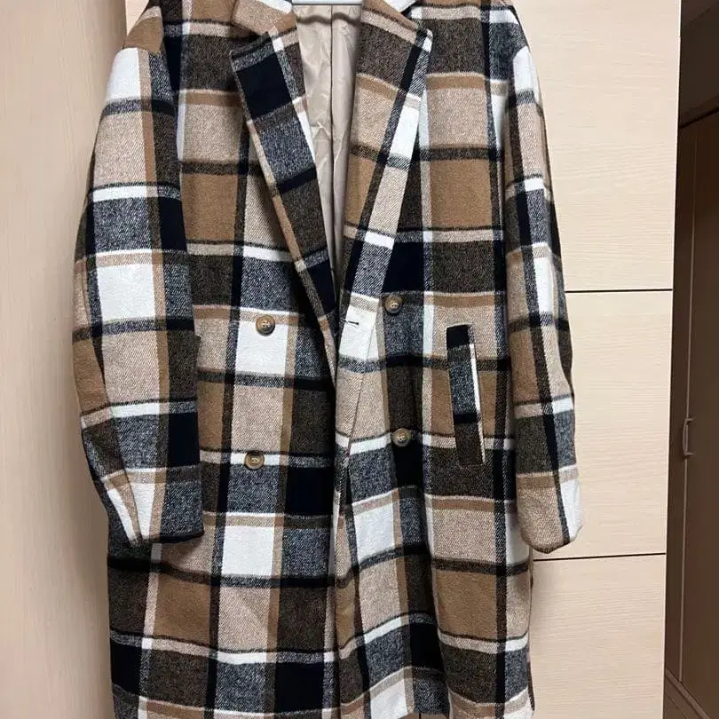 SHEIN 체크 무늬 더블 버튼 체스터 코트 S