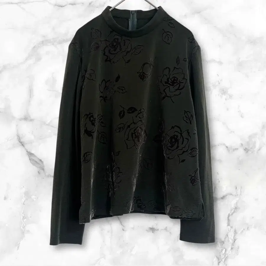 코레트 꽃무늬 장미 긴팔 티셔츠 다크 그린 큐프라 혼방 심플 M