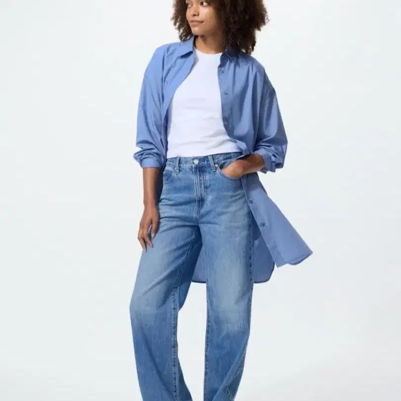 유니클로 오버 사이즈 셔츠 원피스 BLUE L
