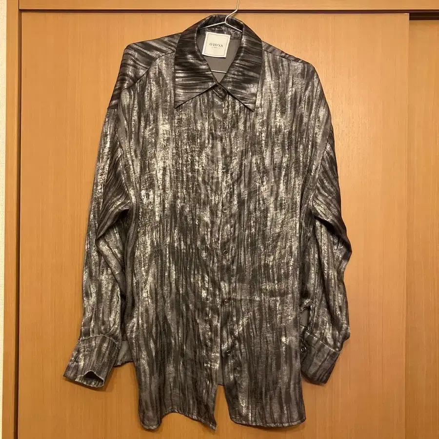 매트한 광택을 뿜는. 실버 번짐 스트라이프 패턴 셔츠 (그레이)