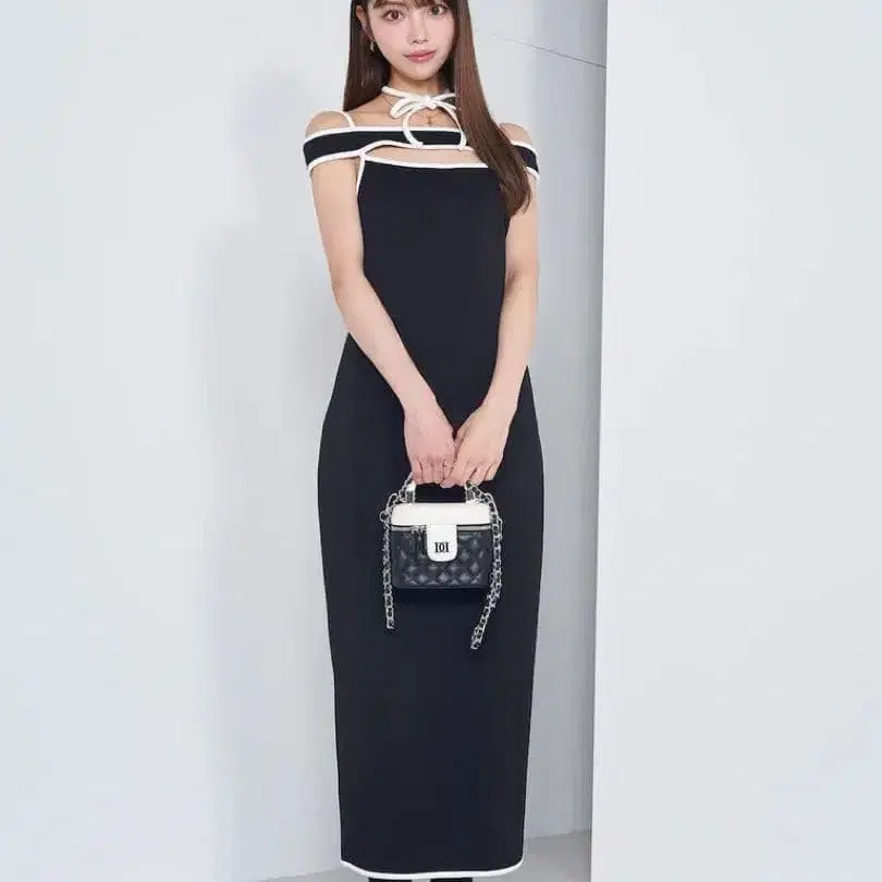 Darich 파이핑 컷 리본 롱 원피스