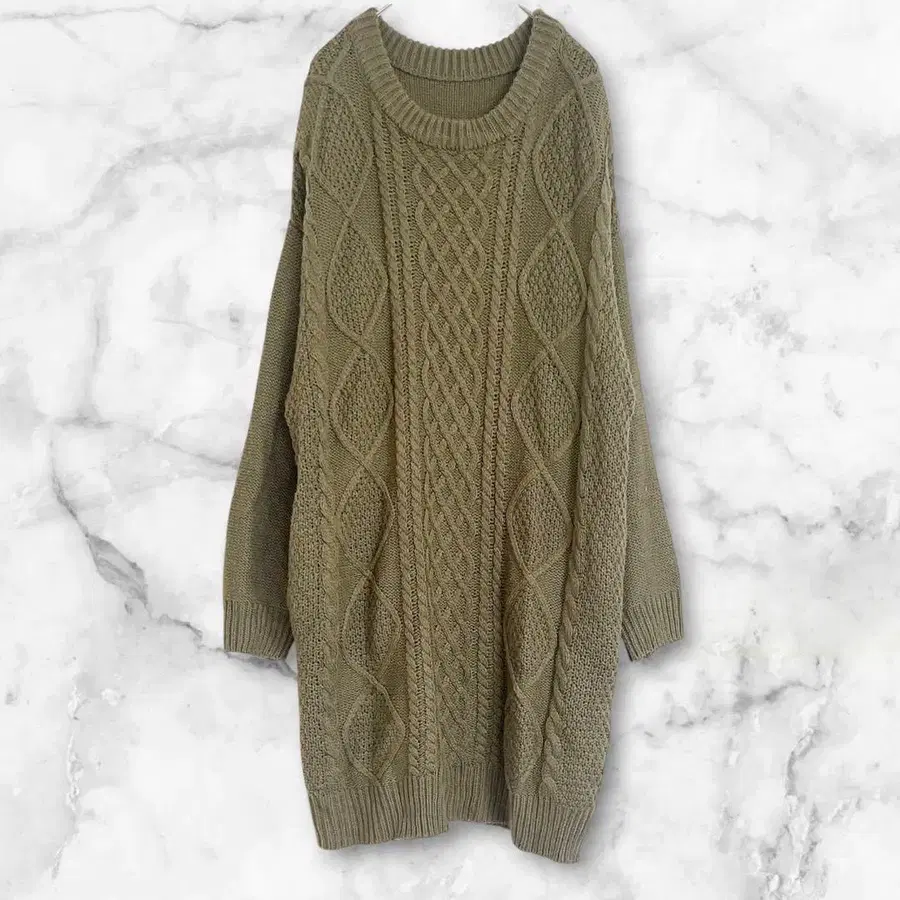 올리브색 케이블 니트 원피스 무릎 기장 M 아크릴 100% 심플