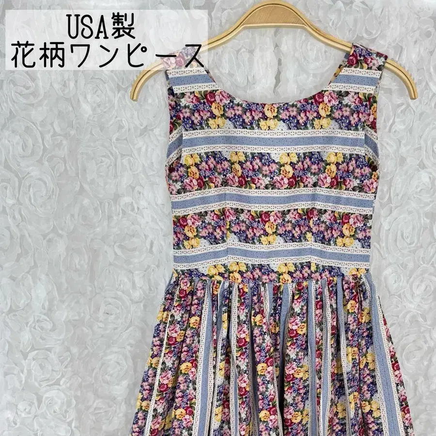 섬세한 꽃무늬 스트라이프가 인상적인, USA제 빈티지 원피스.