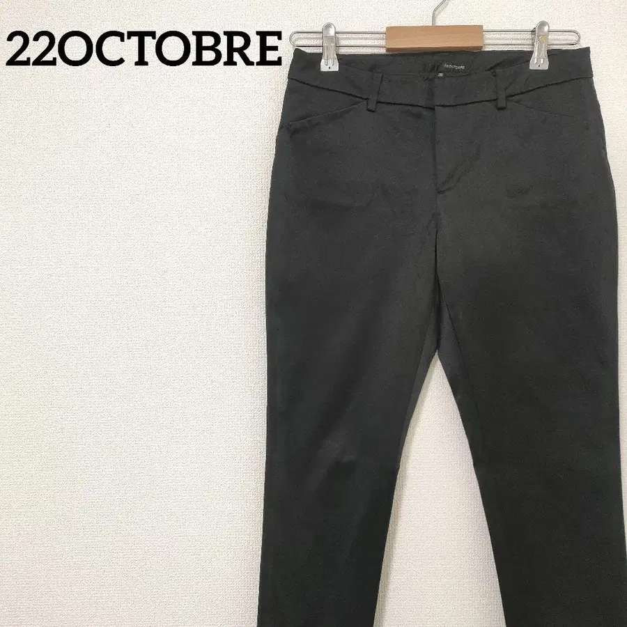 22 OCTOBRE의 고급스러운 광택감이 매력적인 블랙 스트레치 팬츠입니다.