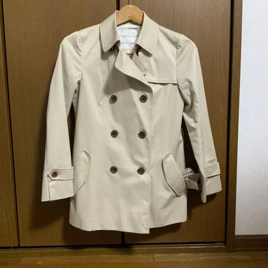 베이지 더블 브레스트 트렌치코트 쿠미쿄쿠 깔끔한 취업활동 코트