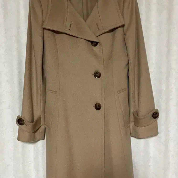 미쉘클랑 울 캐시미어 혼방 베이지 더블 브레스트 코트