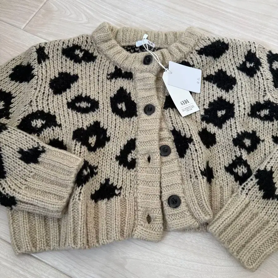 레오파드 무늬 크롭 가디건