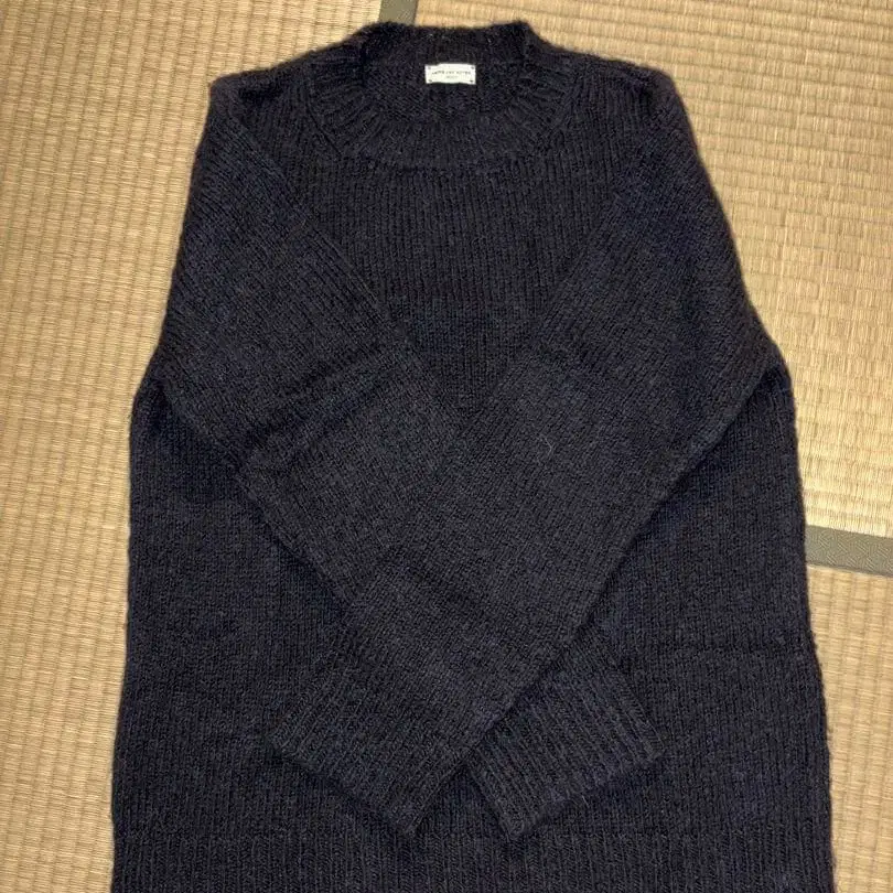 DRIES VAN NOTEN의 혼방 크루넥 니트입니다. 두껍지는 않지만 매우 따뜻하며, 너무 포멀하지도 캐주얼하지도 않은 다용도 니트입니다. 텍스처가 확실해서 올 블랙 코디에도 적절한 악센트가 되어주었습니다. 다용도로 활용 가능하다고 생각합니다. 실패 없는 블랙 니트를 찾으시는 분께 꼭 입어보시길 바랍니다. 어깨 너비 48 기장 73 가슴 너비 56 소매 길이 61 정가 10만 엔 정도이며, 마루노우치의 랜드 오브 투모로우에서 약 2년 전에 구매했습니다. 몇 회 착용한 새 상품급입니다. 신장 165, 몸무게 60kg으로 오버핏으로 입었습니다. 키가 아주 크지 않다면 문제없이 입으실 수 있을 것 같습니다. 색상이 잘 보이지 않지만 칠흑에 가까운 블랙입니다. 네이비 느낌, 그레이 느낌은 없습니다. DRIES VAN NOTEN