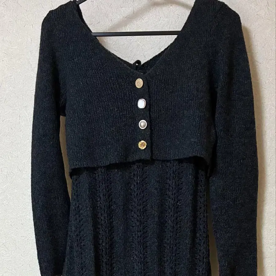 리젝시 앙상블 레이스 니트 원피스 차콜 그레이