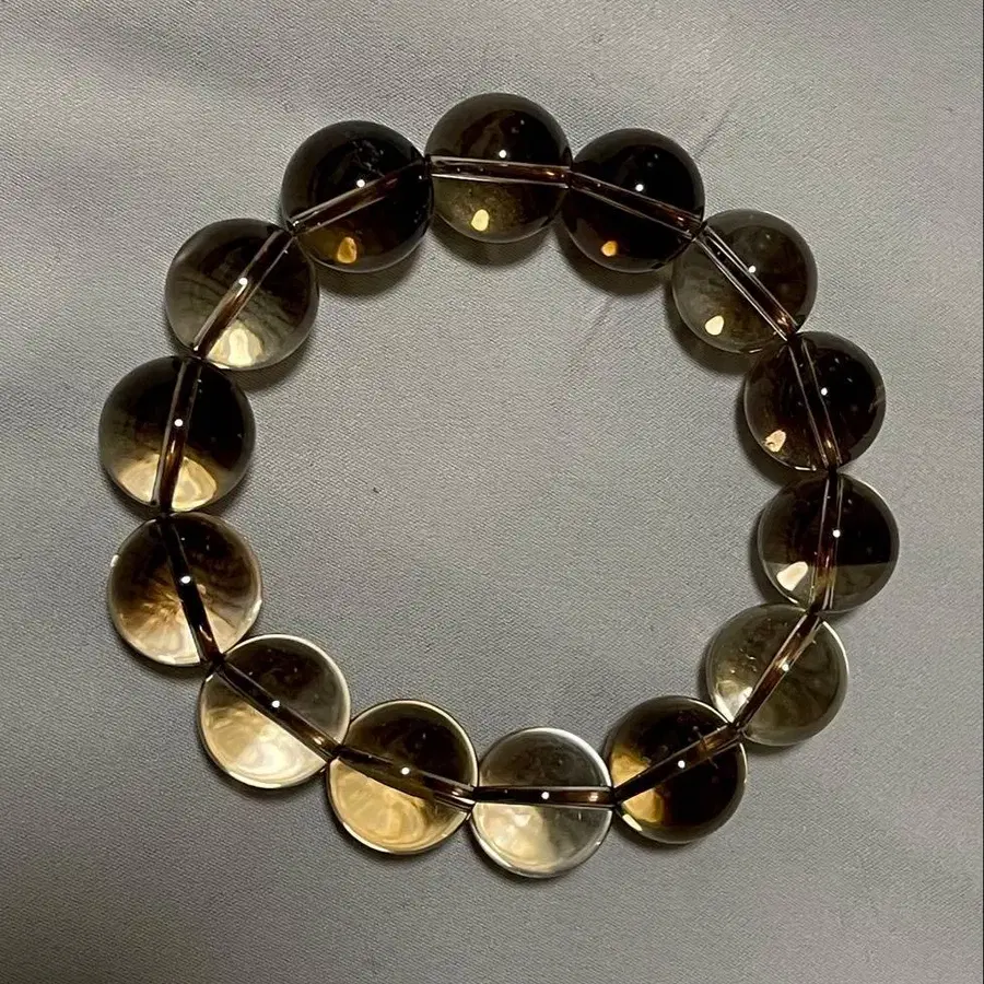 투명한 수정 부분과 스모키한 브라운 부분이 한 알 안에서 명확하게 나뉜 쿼츠입니다.