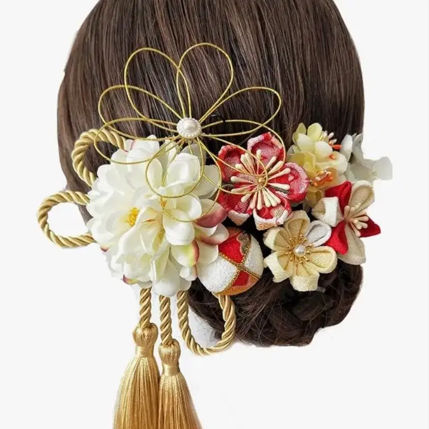 일본풍 머리 장식 꽃 모티브 후리소데