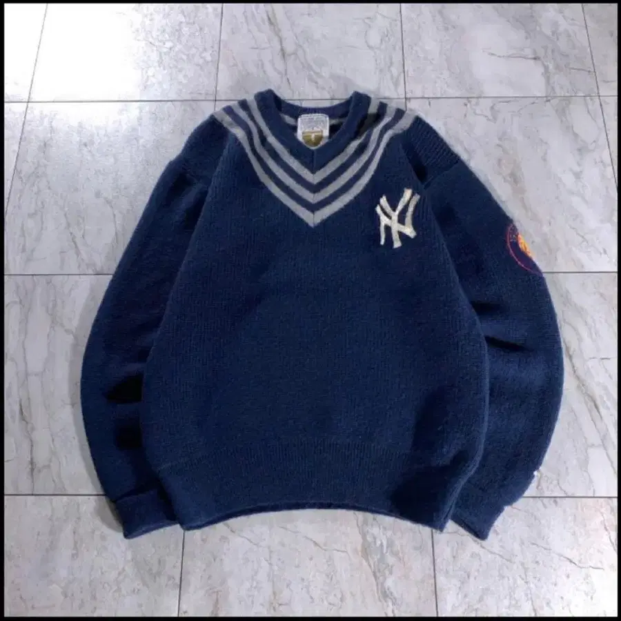 90s 00s STARTER MLB 양키스 짧은 기장 니트 네이비 자수