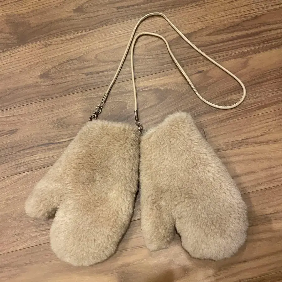 새상품급 퍼 미튼형 장갑 베이지 끈 포함