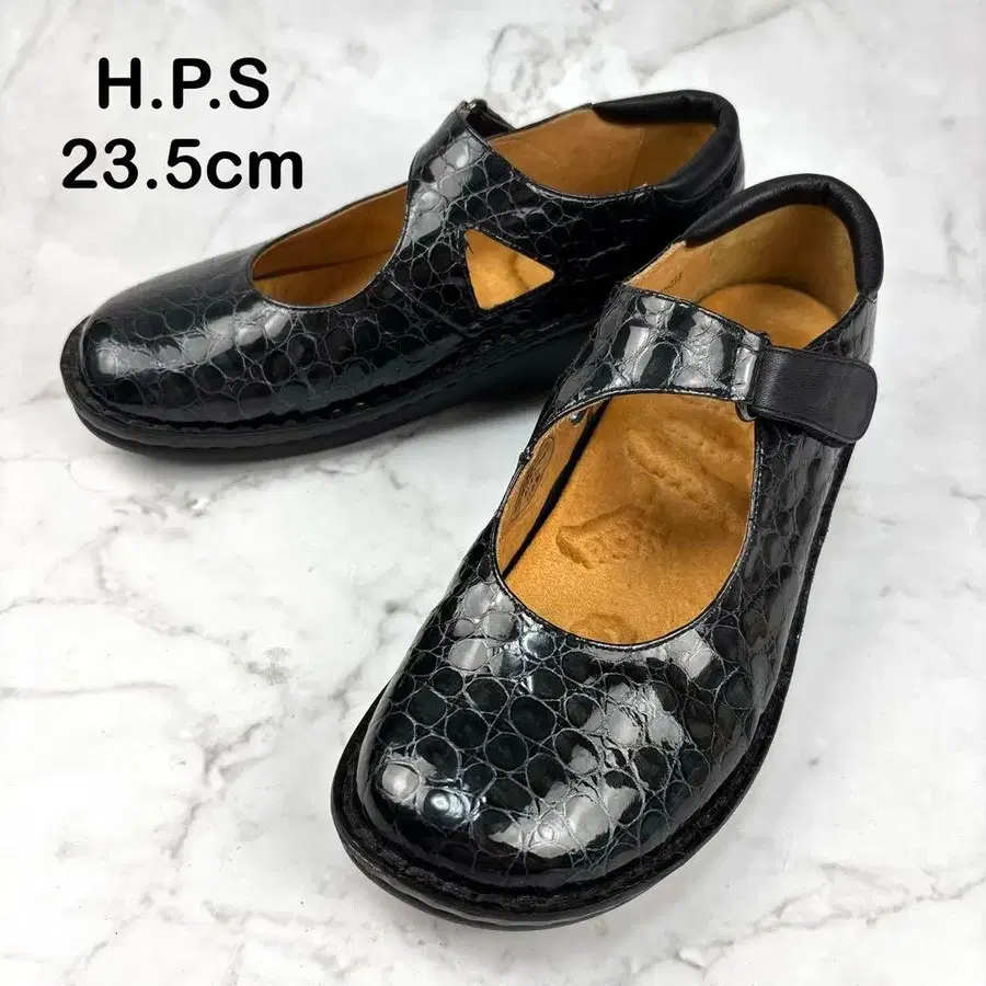포인트: 슬립온 메리 제인 스트랩 컴포트 웨지솔 악어 무늬 천연 가죽 레더 일본제