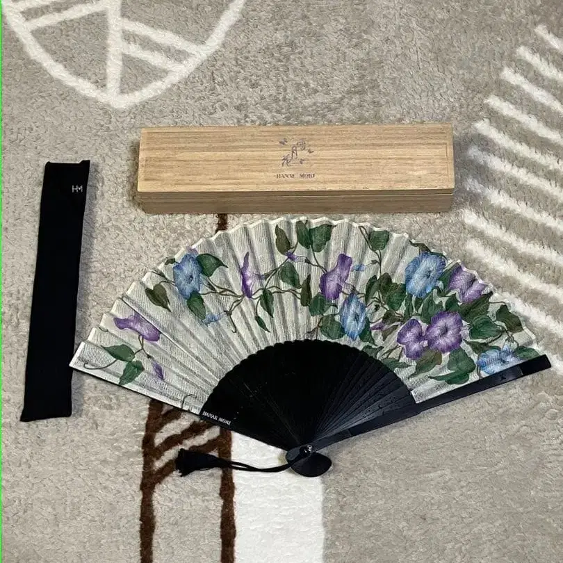 새상품/HANAE MORI/수국 패턴 부채 (부채 주머니 포함)