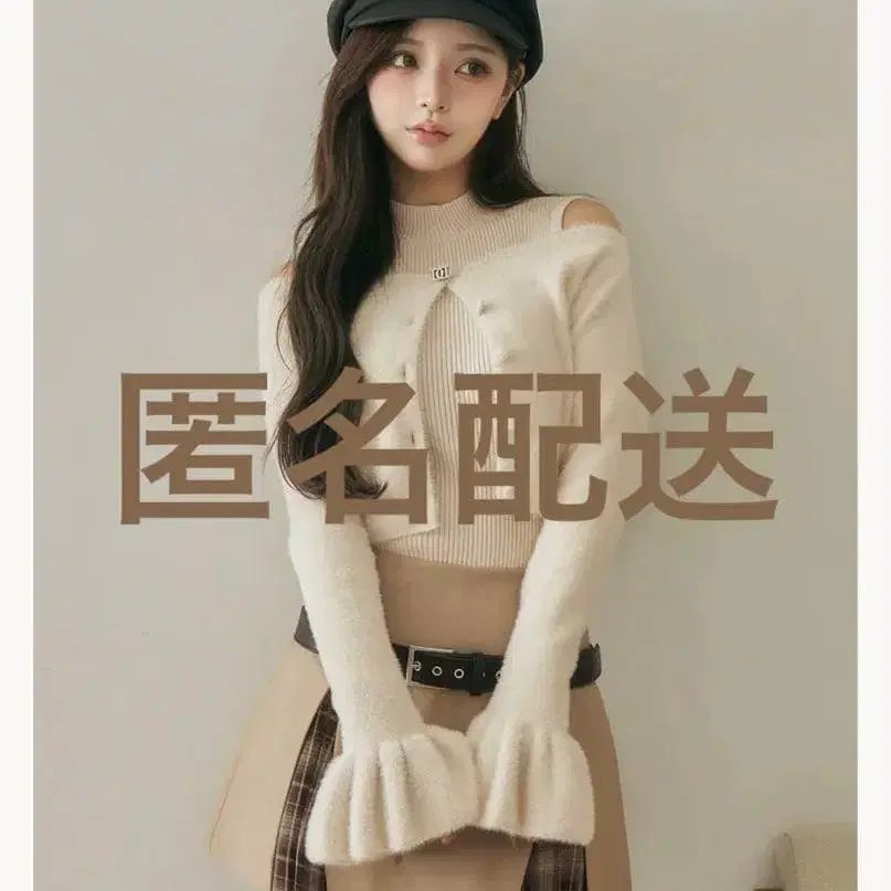 포근한 질감이 여성스러움을 돋보이게 하는 샤기 가디건 x 리브 니트 탑 세트 아이템!