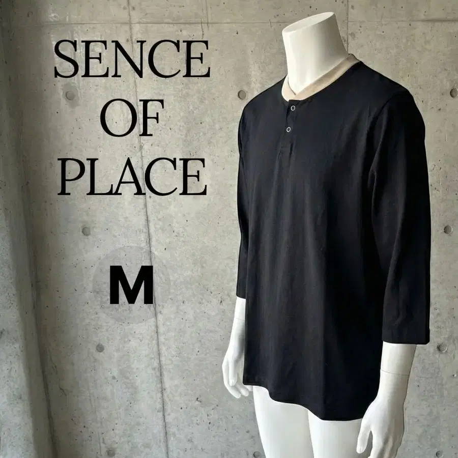 [새상품급] 센스 오브 플레이스 헨리넥 7부 소매 티셔츠 블랙 M 사이즈