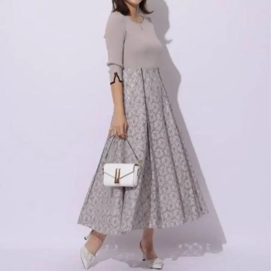 정가 25300엔 아푸와이저 리셰 배색 레이스 절개 도킹 원피스