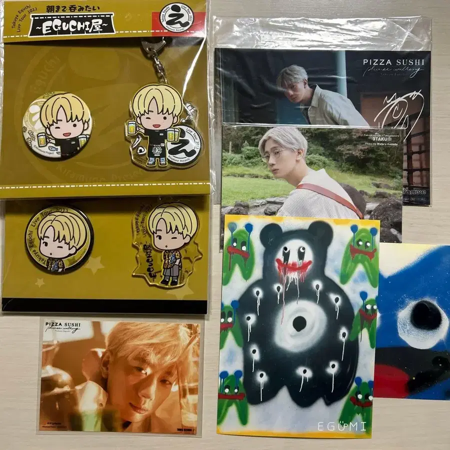에구치 타쿠야 씨의 굿즈 일체입니다. 각각 어두운 곳에 보관했습니다. 솔로 투어 굿즈 (아크릴 스탠드, 캔뱃지 세트 2개, 둘 다 미개봉) CD 구매 혜택 (2종류) ※ 큰 것은 봉투에 흠집과 접힌 부분이 있습니다. 내용물은 이상 없습니다. 사진으로 확인해 주세요. 산타쿠!!! 엽서 세트 ※ 야시로 타쿠 씨가 포함되어 있습니다. 미개봉이므로 라인업은 사진으로 확인해 주세요. EGUMI 네프리 (2장) 일괄 구매를 우선하지만, 낱개 판매도 가능합니다. 그 경우 가격이 비싸집니다. 또한, 기타 에구치 타쿠야 씨 및 성우 굿즈 판매 중입니다. 모두 구매하시면 할인해 드리니, 검토해 주시면 감사하겠습니다. 만지지는 않았지만, 개를 키우고 있어 알레르기가 있으신 분은 구매를 삼가해 주시기 바랍니다.