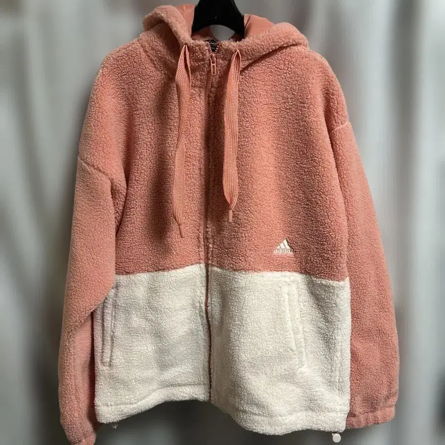 아디다스 플리스 자켓 핑크/화이트 보아 자켓 귀여운 M