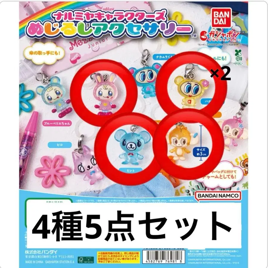 나루미야 캐릭터 메지루시 액세서리 4종 5개 묶음 판매