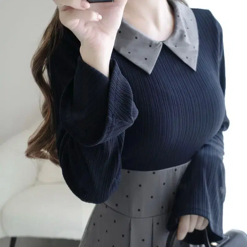 mily bilet 절개 배색 플레어 소매 도킹 원피스 (롱 기장)