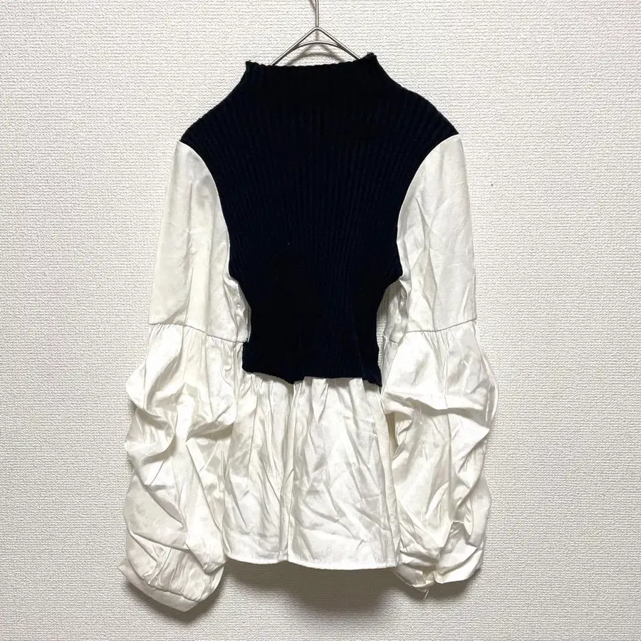 니트 x 직물 도킹 디자인으로, 볼륨 소매가 포인트인 상품입니다.