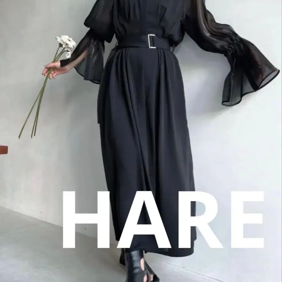[ 포멀 드레스/결혼식 ] HARE 2WAY 소매 시어 원피스 블랙