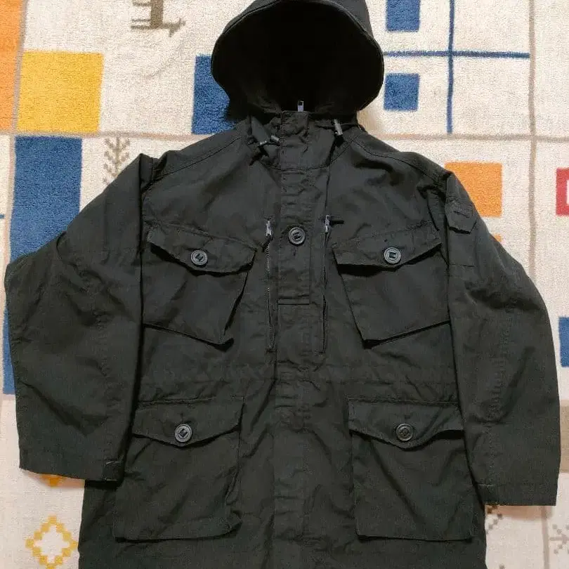 ■ 상품 개요 영국군 특수부대 (SAS / Special Air Service) 등에서 사용되는 필드 자켓 (스모크 후드티) 입니다. 인기 있는 블랙 색상으로, 특징적인 파라슈트 버튼 (슬롯 버튼)과 수납력이 높은 4개의 플랩 포켓, 가슴 부분의 세로 지퍼 포켓 등 기능미가 넘치는 디자인입니다. 넉넉한 가슴 너비의 박스 실루엣으로, 현재 트렌드에 맞는 오버 사이즈 코디가 가능합니다. 유로 밀리터리, 테크 계열 패션을 좋아하시는 분들께 추천합니다. ■ 사이즈 표기: 불명 (실측치수를 참조해 주세요) 어깨 너비: 53cm 가슴 너비: 64cm 기장: 74cm 소매 길이: 54cm ※ 개인 측정으로 인해 약간의 오차는 용서해 주십시오. ■ 색상 블랙 (검정) ■ 상태 구제 의류 특유의 착용감과 구김은 있지만, 착용에 지장을 줄 만한 큰 데미지는 보이지 않습니다. ※ 구제 빈티지 의류에 이해가 있는 분만 구매 부탁드립니다. ■ 디테일 프론트: 더블 지퍼 & 벨크로 & 버튼 포켓: 프론트 x 4, 가슴 지퍼 x 2, 팔 x 1 후드, 허리, 밑단에 코드 있음 파라슈트 버튼 (테이프 버튼) ■ 발송 컴팩트하게 접어서 발송합니다. [검색용 택] #영국군 #UKARMY #브리티시 아미 #SAS #특수부대 #밀리터리 자켓 #필드 자켓 #마운틴 후드티 #스모크 #유로 밀리터리 #유로 구제 #아미 산책 #남성 빈티지