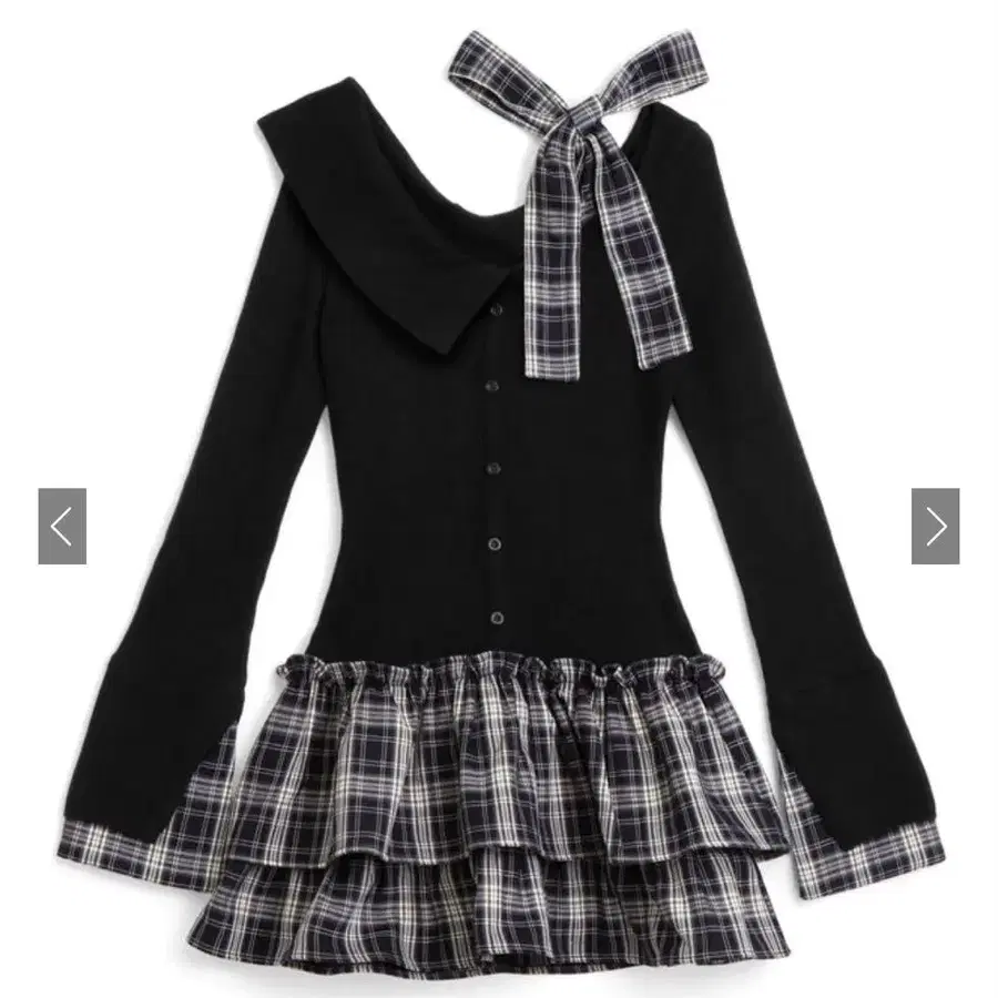 체크 무늬 도킹 원숄더 리본 프릴 니트 원피스 [pm785]