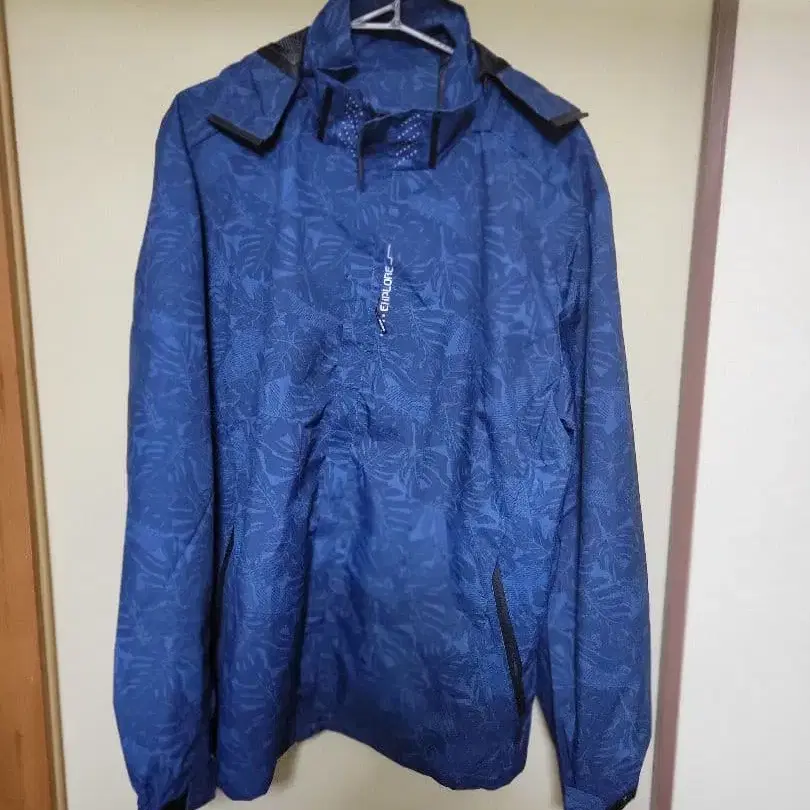 남성용 바람막이 잎사귀 패턴 블루 플로럴 후드 부착 자켓