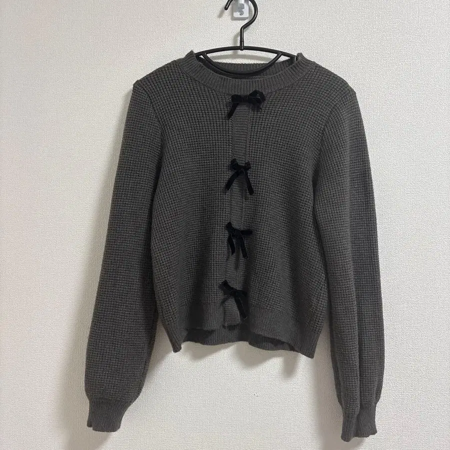 리본 포함 버튼 그레이 긴팔 니트
