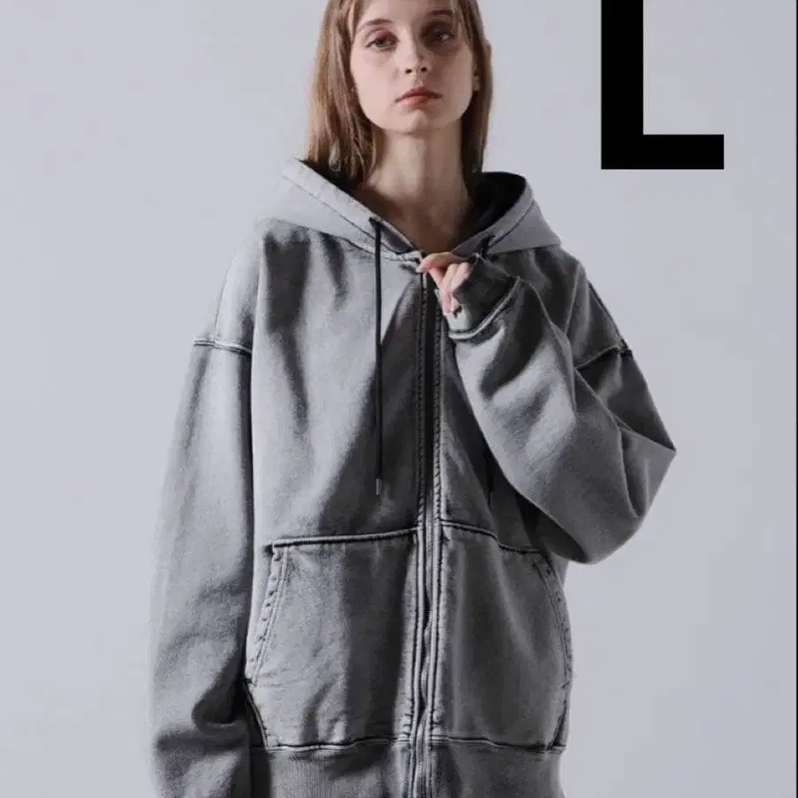 CLEL 헤비 웨이트 로고 자수 풀 집업 후드티 화이트 계열 L