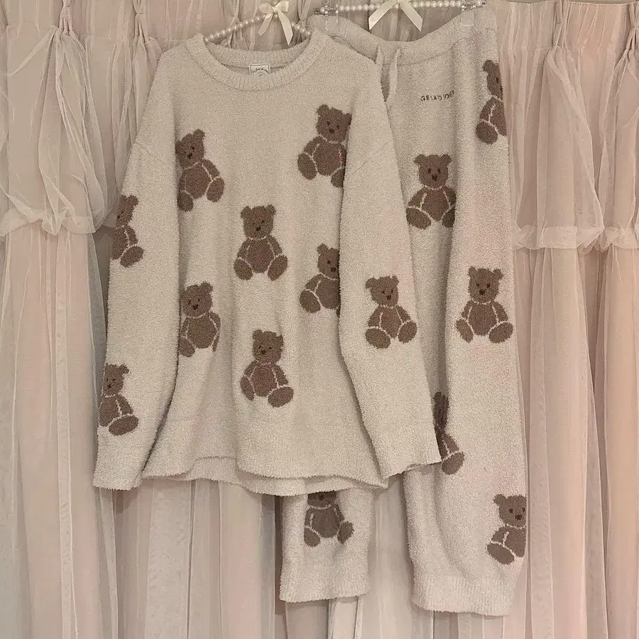 젤라또피케 베어 자카드 풀오버 롱 팬츠 상하의 곰 베이지