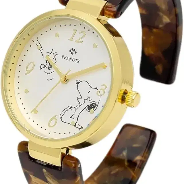 미사용 새상품 미개봉 SNOOPY 아날로그 손목시계 골드 브라운