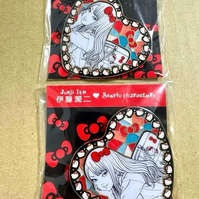 이토 준지 x 산리오 메탈 하트 배지 토미에 헬로키티 2종 세트