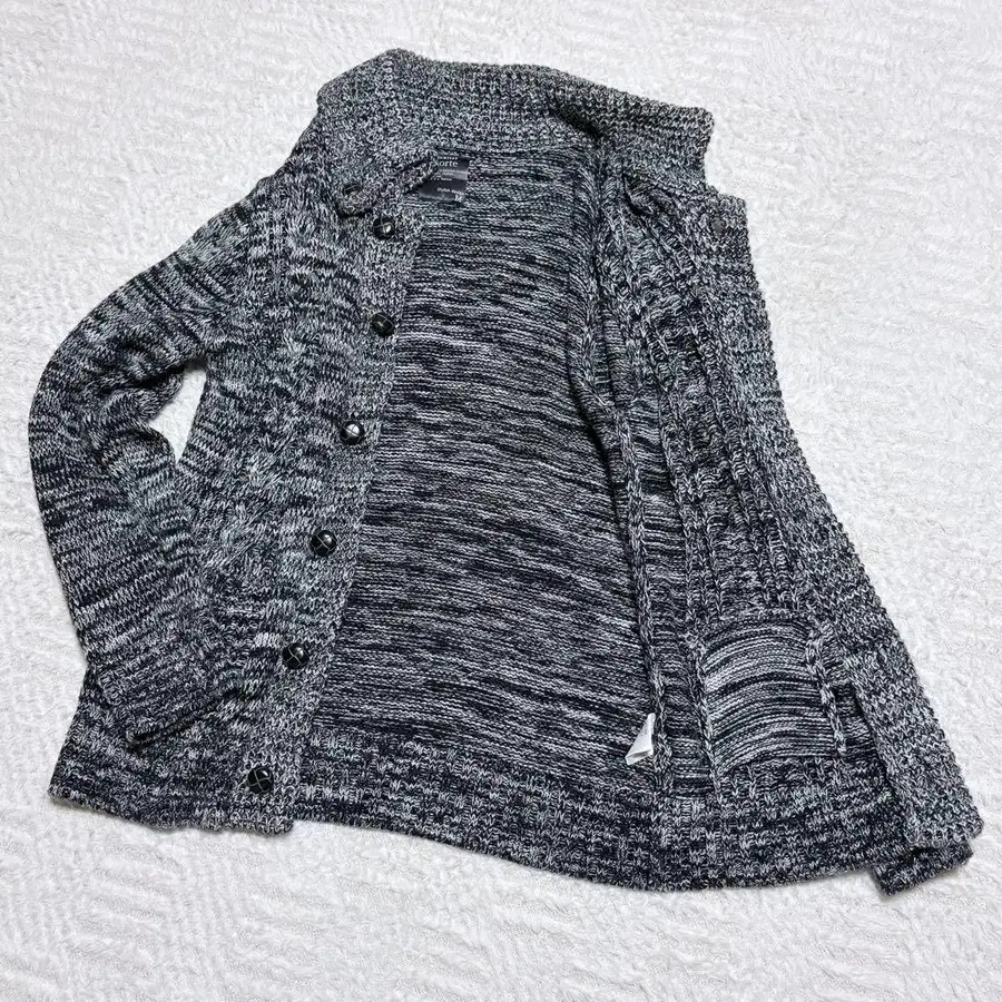 고품질 니트 가디건 블랙 그레이 호두 버튼 M 사이즈 큰 옷깃이 특징적