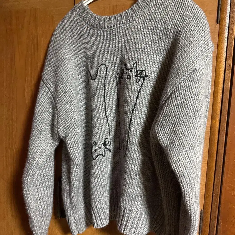 BEAMS HEART 아트 고양이 자수 니트 풀오버