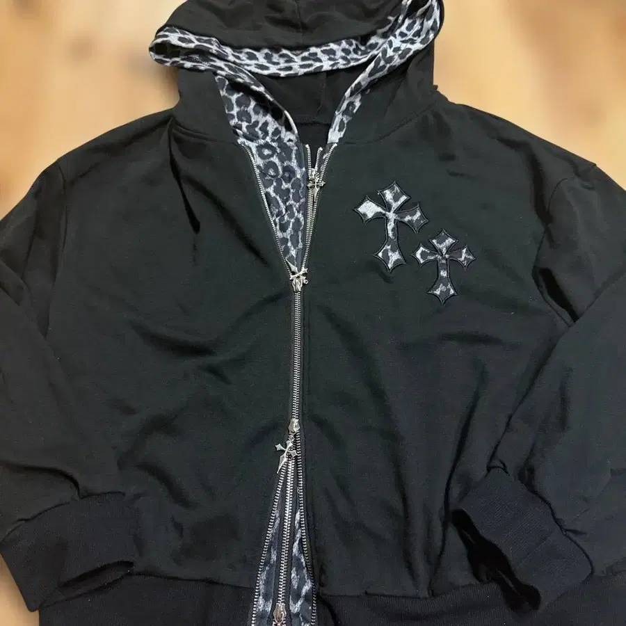 갸루 스타일 그런지 스타일 레오파드 무늬 십자가 후드티