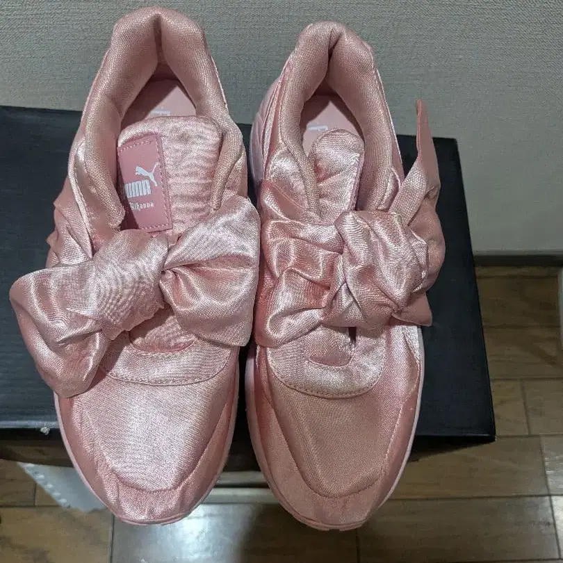 PUMA 핑크 새틴 스니커즈 리본 포함