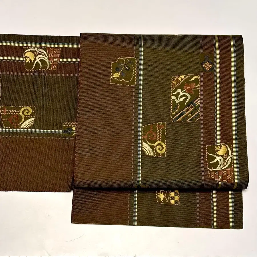 자동 번역되었어요. 원문보기브라운과 모스그린의 차분한 색감에 꽃무늬가 인상적인 나고야 오비입니다.