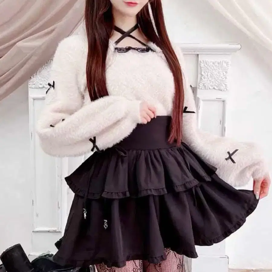 MARS MA*RS 치비 리본 케이프풍 니트 핑크