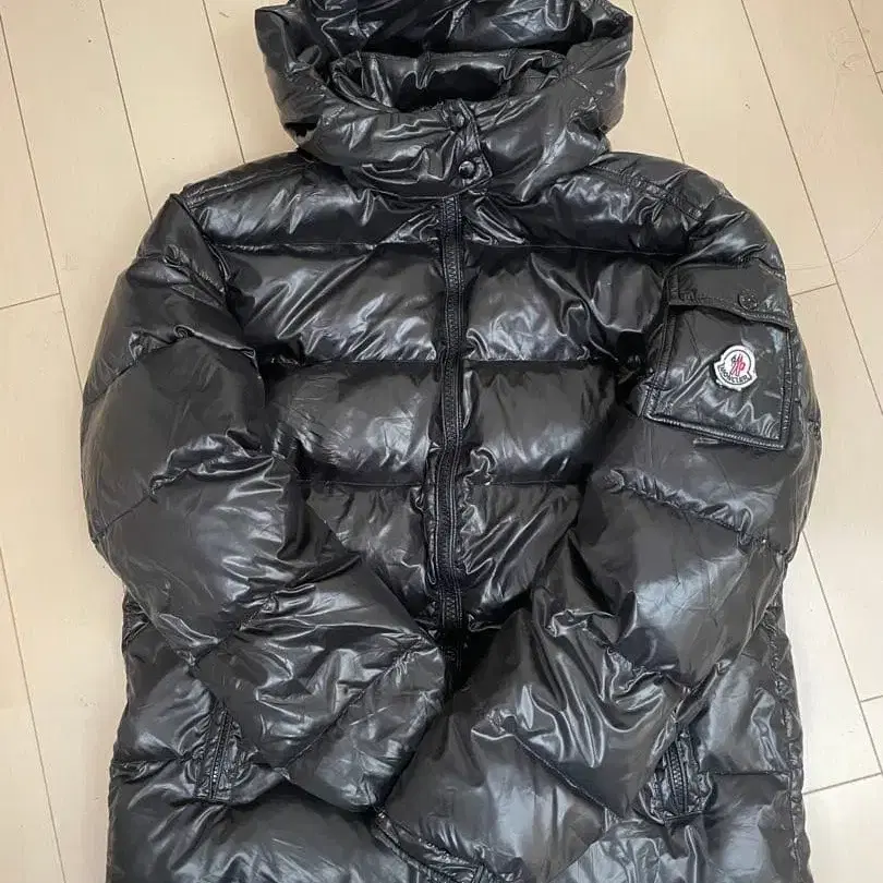 블랙 후드 부착 다운 자켓