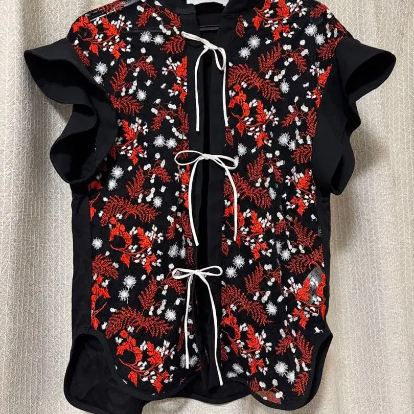 마메 쿠로구치 19aw 꽃무늬 자수 반팔 상의 사이즈 2