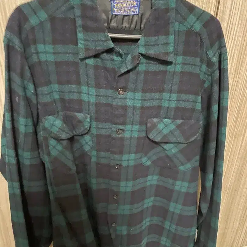 Pendleton 울 플란넬 셔츠 블랙과 그린 체크