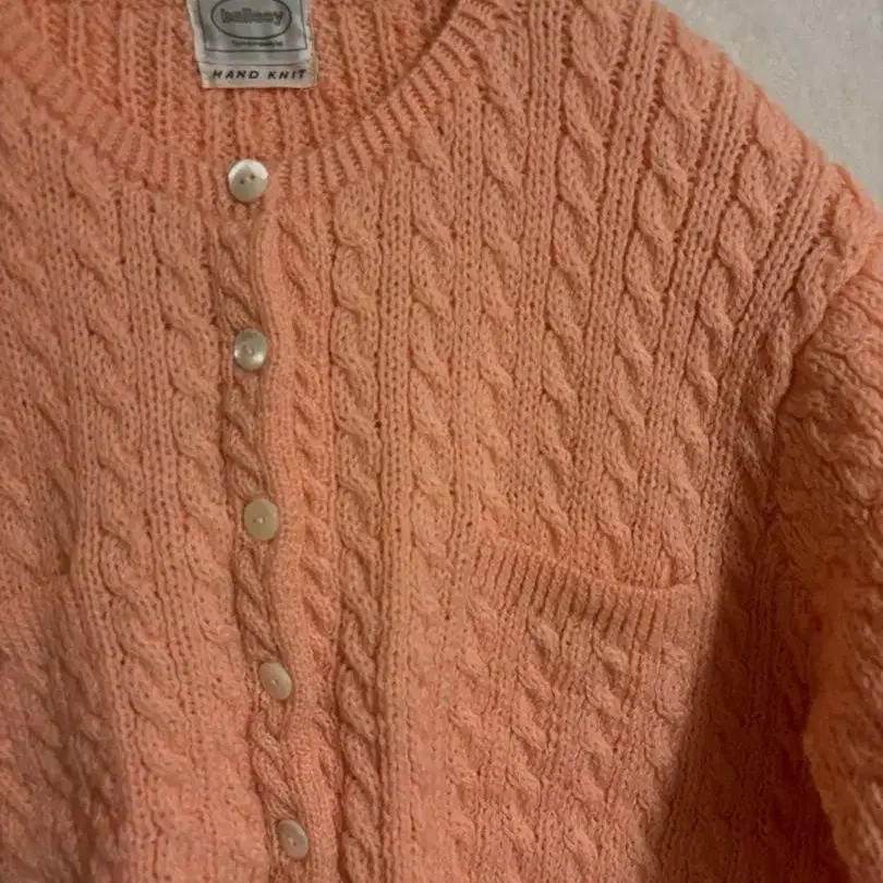 ballsey 케이블 짜임 울 100% 핸드 니트 가디건 핑크